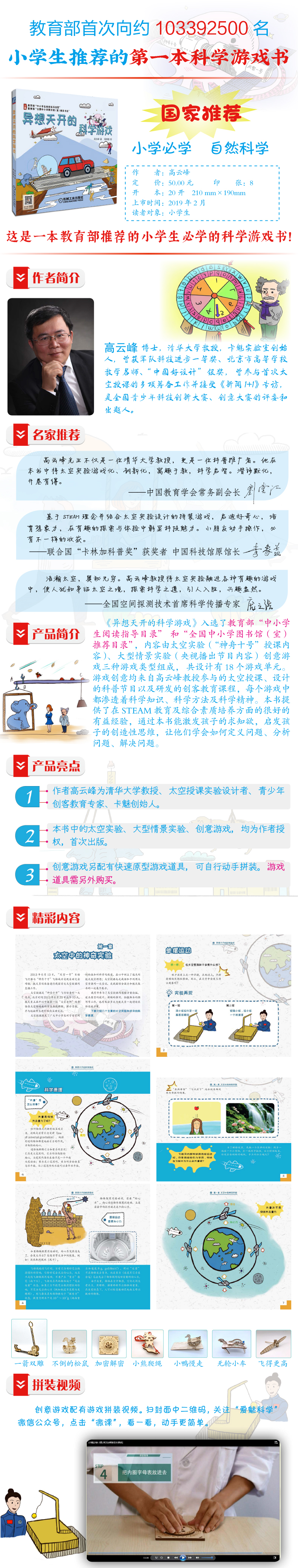 1、《異想天開的科學(xué)游戲》內(nèi)容全部來自高云峰教授參與的太空授課、設(shè)計的科普節(jié)目以及研發(fā)的創(chuàng)客教育課程。
